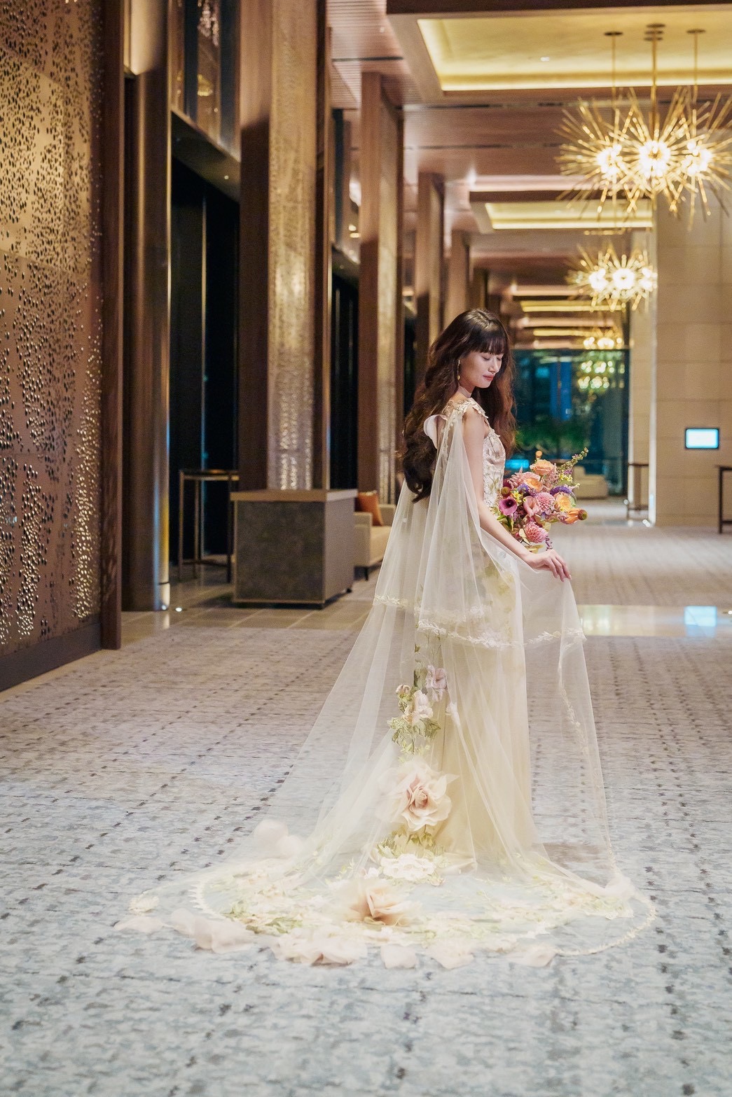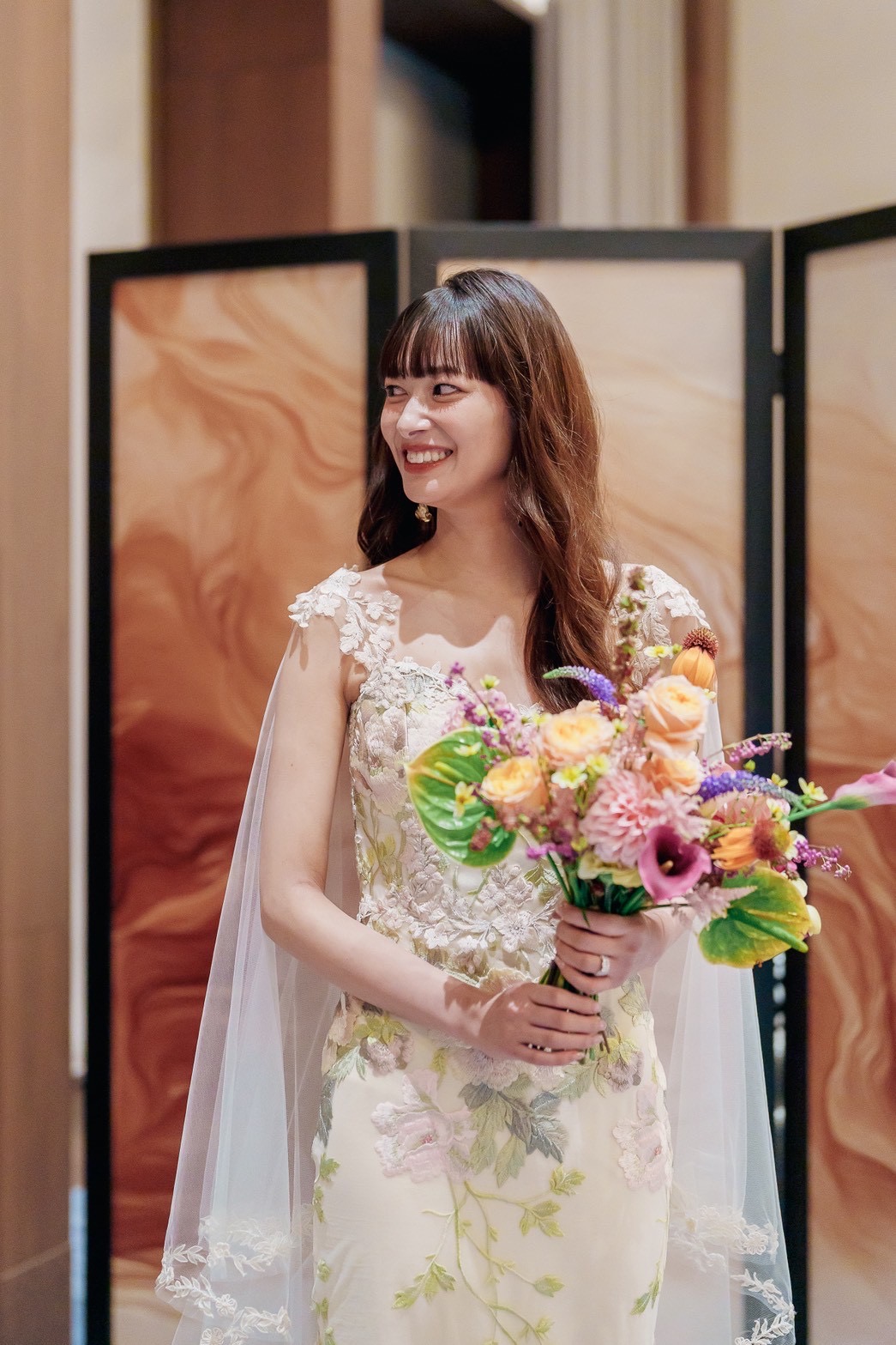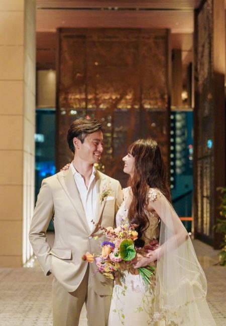 Color Dress:Peony gown & Gypsy cape(Claire Pettibone) https://leclat-mariage.jp/claire-pettibone/ & https://leclat-mariage.jp/claire-pettibone/page/4/ Bouquet:Maison Lena/Kagan Venue:Fairmont TOKYO